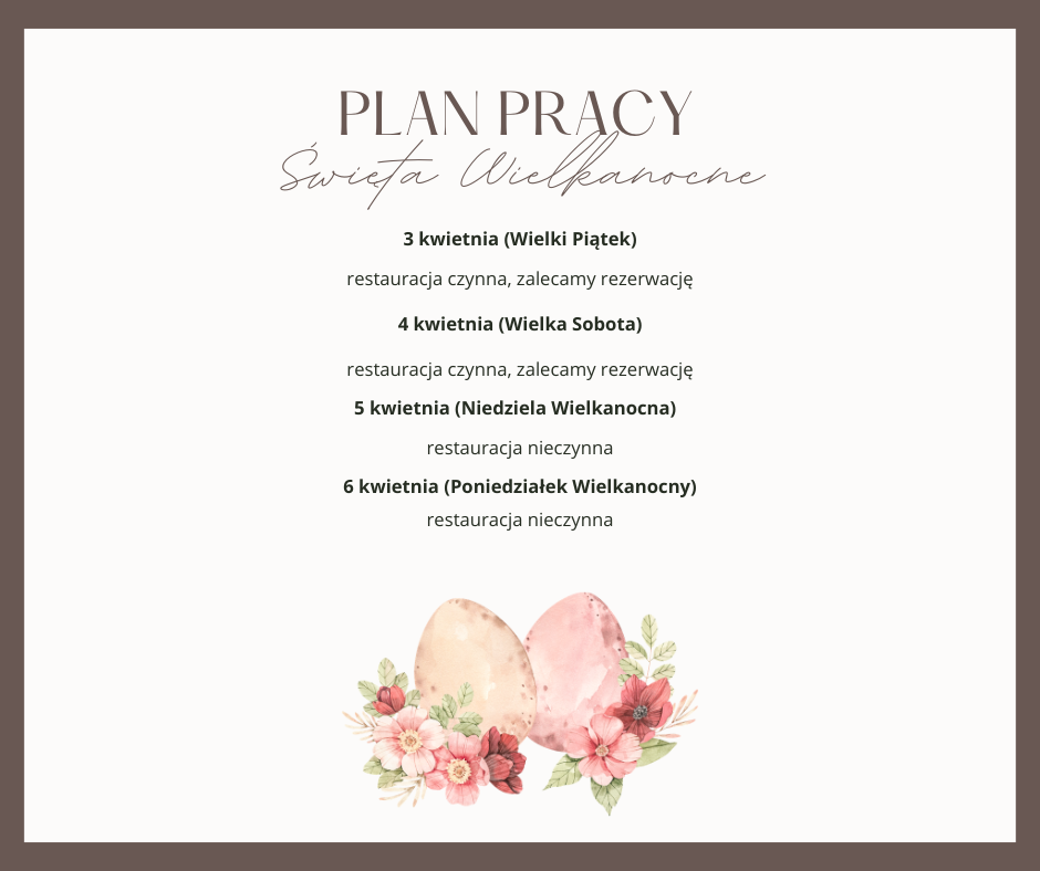 czwartek 02.04. - restauracja czynna