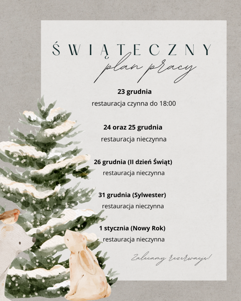 sobota 20.12. - restauracja czynna, zalecamy rezerwację